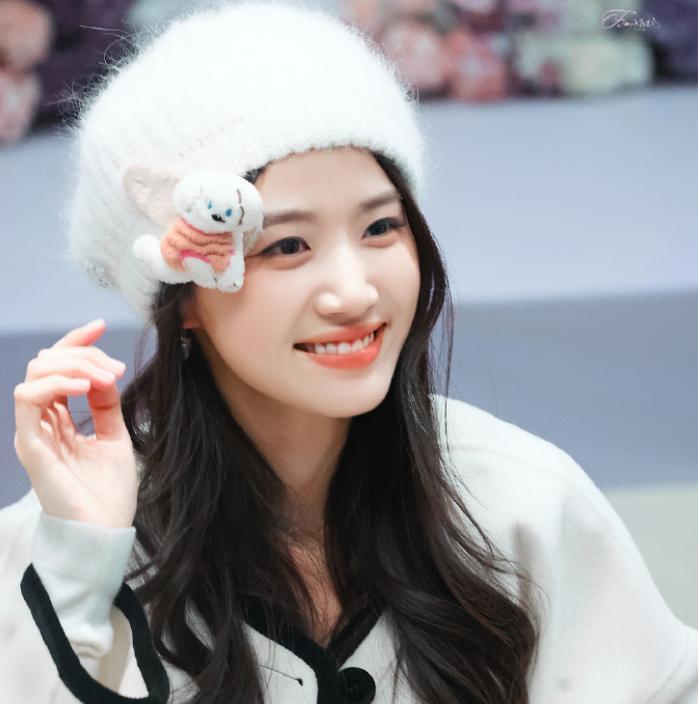 完了照里的她衣裳白色毛衣带着毛茸茸的帽子看起来特别软萌,明媚的笑颜氧气感扫数,长鬈发看起来很有氛围感,简直即是从韩剧里走出的温煦女主!