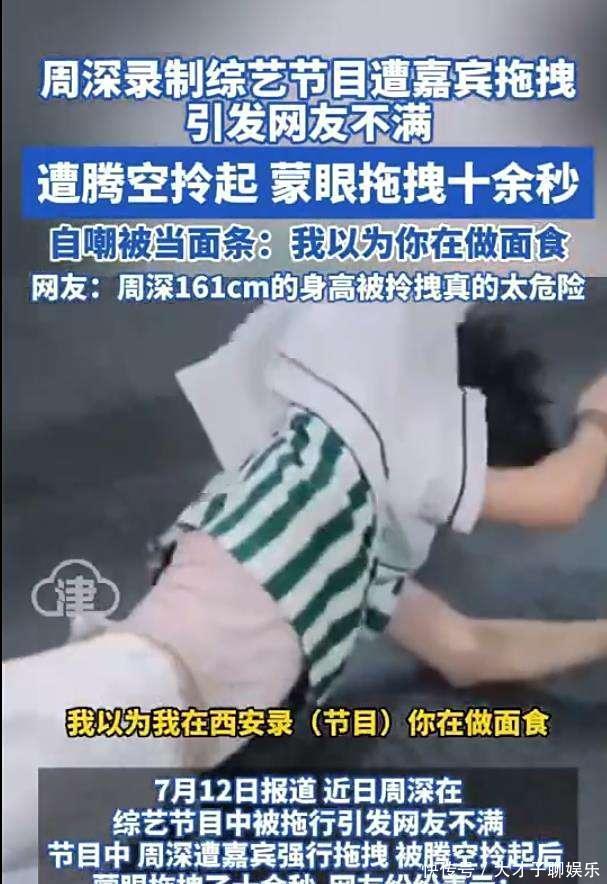 一段综艺节目中的片断在网罗上炸开了锅——歌手周深在录制经由中被嘉宾强行拖拽,致使被腾空拎起蒙眼拖行十余秒,画面惊惶到让网友直呼:“这是综艺还是极限挑战?”