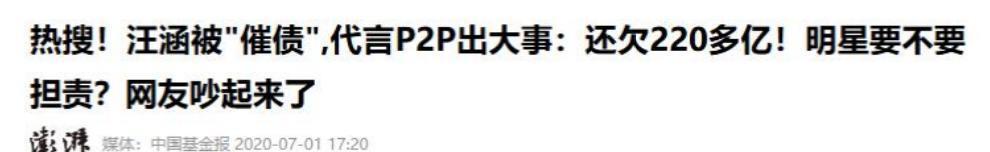 滂湃新闻——2020-07-01——热搜!汪涵被"催债",代言P2P出大事:还欠220多亿!明星要不要担责?网友吵起来了