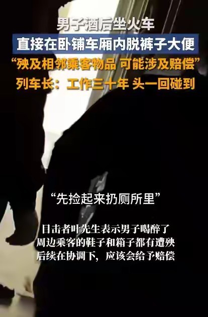 须眉酒后在火车车厢大便,列车长:责任三十年,头一趟遇到