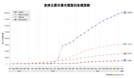 1月21日,大众最大AI开源社区Hugging Face发布的最新数据清楚,阿里千问滋生模子数已破损20万个,成为大众首个结束此概念的开源大模子;同期,千问系列模子下载量破损10亿次,平均每天被下载110万次,已透彻超过好意思国Llama,稳居开源大模子大众第一。