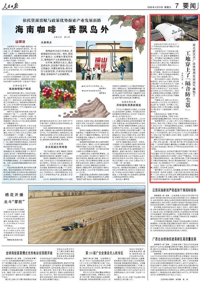 4月8日体育游戏app平台,《东说念主民日报》刊文《工地穿上了“隔音防尘罩”》,聚焦湖北武汉水厂转换,这是湖北省第一个用全闭塞气膜施工的市政相貌。具体骨子如下: