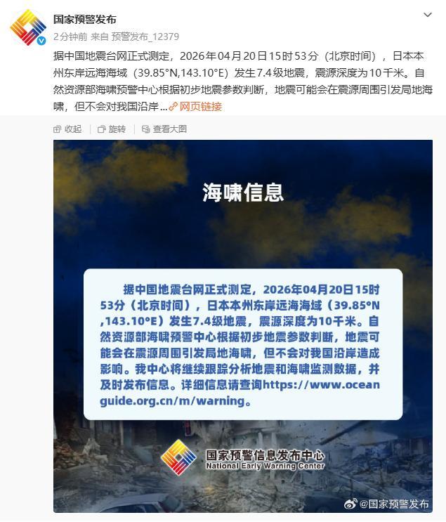 北京技术4月20日下昼,日本本州岛东北部的三陆近海,地壳累积的能量在一忽儿利弊开释。日本征象厅的音信相配迫切,震级从起始的7.4级,只是一个小时就被火速上调到了7.5级,再到7.7级。